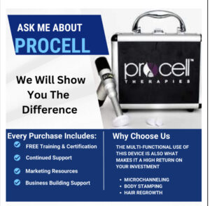 ProCell Microchanneling is a one-of-a-kind device that has been voted as the #1 needling device for 5 years 2018,2019,2020, 2022and 2023. In a competitive aesthetic world, there’s a reason why we continue to receive awards and recognition. The design of our device is like no other. This device offers a clean up and down stamping motion, eliminating damage to the skin. Other devices use a dragging or rolling motion.